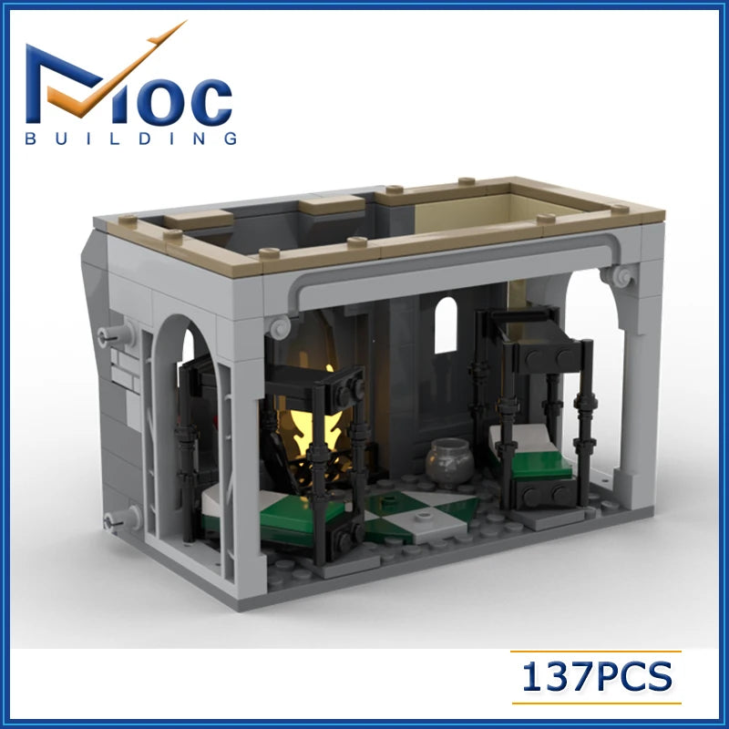 137pcs Classic Movie MOC Slytherin Dorm Building Block Set – DIY Modular Castle Model for Kids