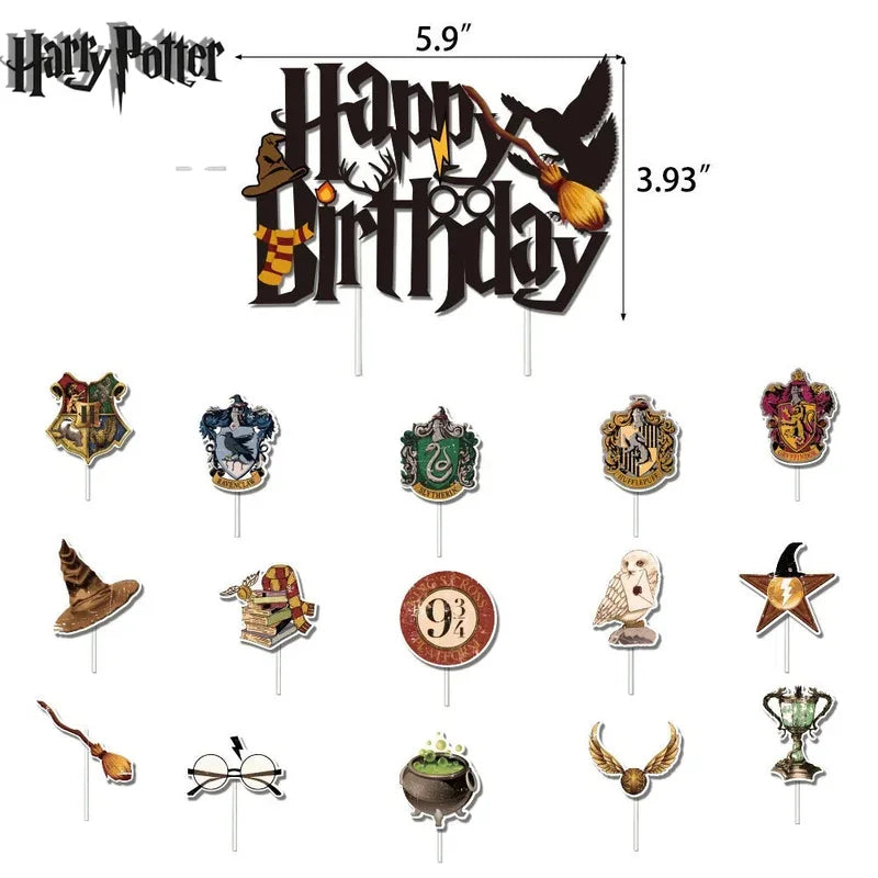 Cartoon Magician Harry Potter Cupcake Toppers – Birthday Cake Decorations